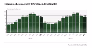 El pasado mes de octubre España recibió 9,2 millones de turistas internacionales, un 3,2% más que en el mismo mes de 2024, con un gasto que total que aumentó un 7,4% y alcanzó los 12.785 millones de euros,