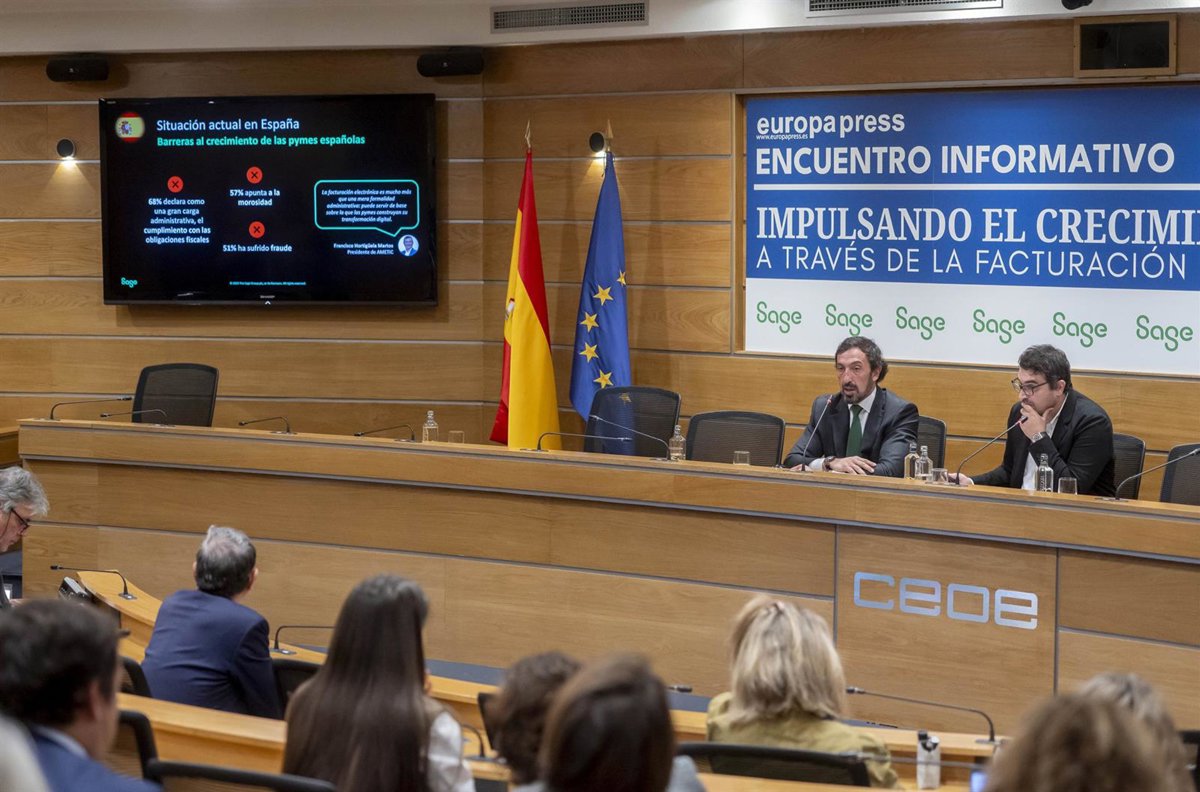 Así se ha expresado el directivo este lunes en el encuentro informativo organizado por Sage y Europa Press bajo el título 'Impulsando el crecimiento de la Pyme a través de la facturación electrónica y la Inteligencia Artificial', celebrado en el auditorio de la Confederación Española de Organizaciones Empresariales (CEOE) en Madrid.