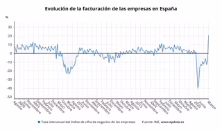 La cifra de negocios de las empresas se disparó un 20,9% en marzo respecto al mismo mes de 2020, su mayor alza interanual desde el inicio de la serie, en 2002, según el Índice de Cifra de Negocios Empresarial (ICNE) publicado este miércoles por el Instituto Nacional de Estadística (INE).