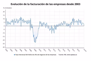 Esta evolución se debió al repunte de la facturación en los servicios no financieros de mercado (+4,9%) y en el comercio (0,7%), subidas que se vieron absorbidas por la caída de las ventas en la industria (-5%) y en el suministro de energía eléctrica y agua, saneamiento y gestión de residuos (-0,7%).