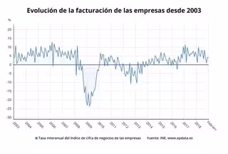 Con el ascenso registrado en el segundo mes del año, la cifra de negocios de las empresas encadena 31 meses consecutivos de incrementos interanuales.