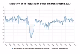 Con el ascenso registrado en el cuarto mes del año, la cifra de negocios de las empresas encadena 33 meses consecutivos de incrementos interanuales.