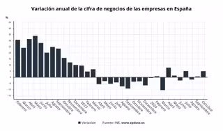 La cifra de negocios de las empresas subió un 4,9% en octubre en relación al mismo mes de 2023, registrando su mayor alza desde el pasado mes de abril, según el Índice de Cifra de Negocios Empresarial (ICNE) publicado este viernes por el Instituto Nacional de Estadística (INE).