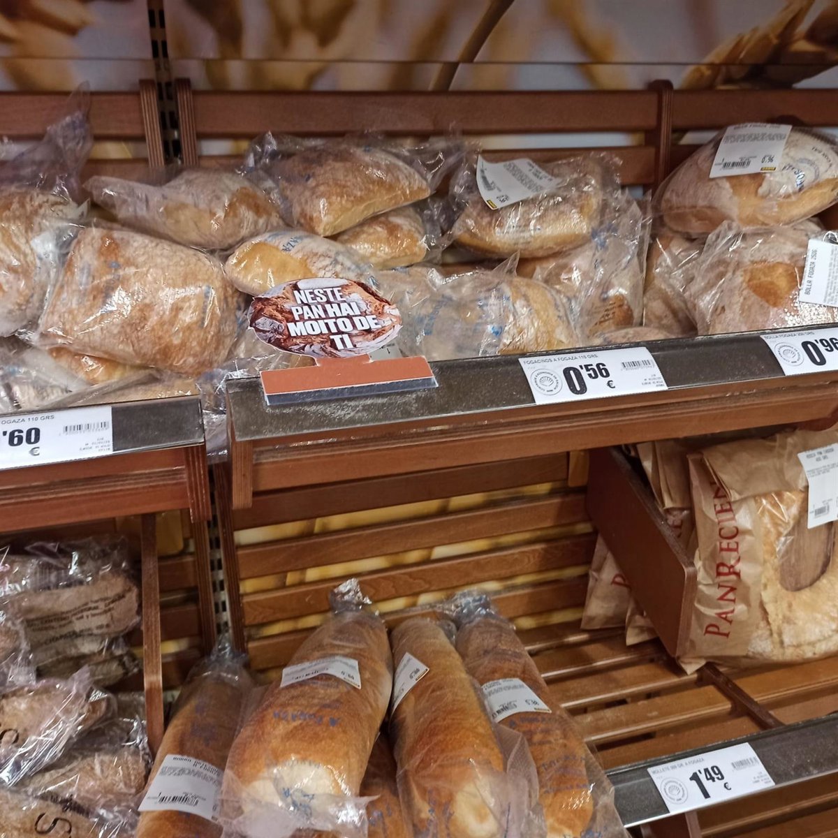 Facua también ha detectado reduflación en tres productos de Aldi de los cuales dos son panes. La barra gourmet con aceite de oliva costaba el año pasado 0,89 euros y pesaba 300 gramos, pero actualmente pesa 260 gramos y cuesta 1,19 euros (un 33,7% más cara la barra y un 54,3% el kilo).