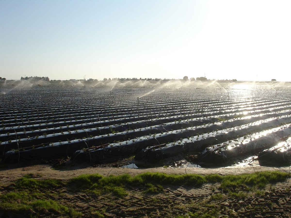 Riego en una plantación de fresas. - COMUNIDAD DE REGANTES DE PALOS.