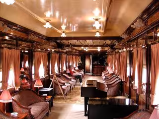 Los coches-salón son "auténticas joyas ferroviarias", construidos en 1928 y 1930, conforman las zonas comunes del tren con dos coches restaurantes --Alhambra y Gibralfaro--, un coche bar --Giralda--, y un coche salón de té --Medina Azahara--, en los que se servirán los desayunos bufé así como algunos almuerzos y cenas.