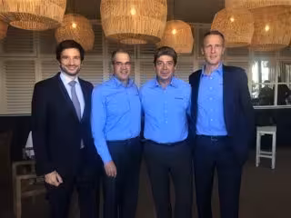 El director de desarrollo de negocio de Fluidra, Luis Boada; el consejero delegado, Bruce Brooks; el presidente de Fluidra, Eloi Planes, y su responsable financiero, Xavier Tintoré - EUROPA PRESS