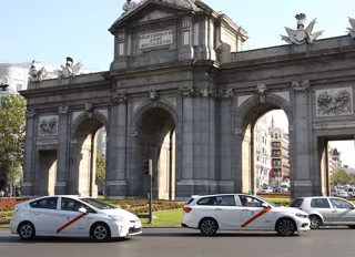 Archivo - Imagen de recurso de varios taxis a su paso por la Puerta de Alcalá, en la ciudad de Madrid. - AYUNTAMIENTO DE MADRID - Archivo