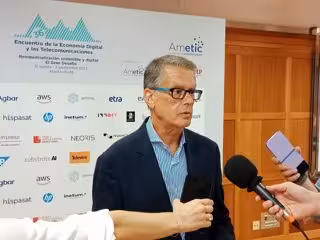 El secretario de Estado de Telecomunicaciones e Infraestructuras Digitales, Roberto Sánchez, atiende este jueves 1 de septiembre a la prensa tras el 36 Encuentro de Telecomunicaciones e Infraestructuras Digitales organizado por Ametic. - AMETIC