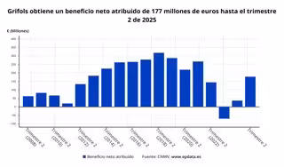 Grifols registró un beneficio neto de 177 millones de euros durante el primer semestre de este año, casi cinco veces superior (+387,6%) al logrado en el mismo periodo del ejercicio precedente, cuando ganó 36 millones de euros, según ha informado la compañía, que ha restablecido además el pago de dividendos, reflejando su "firme compromiso" con la creación de valor para el accionariado.