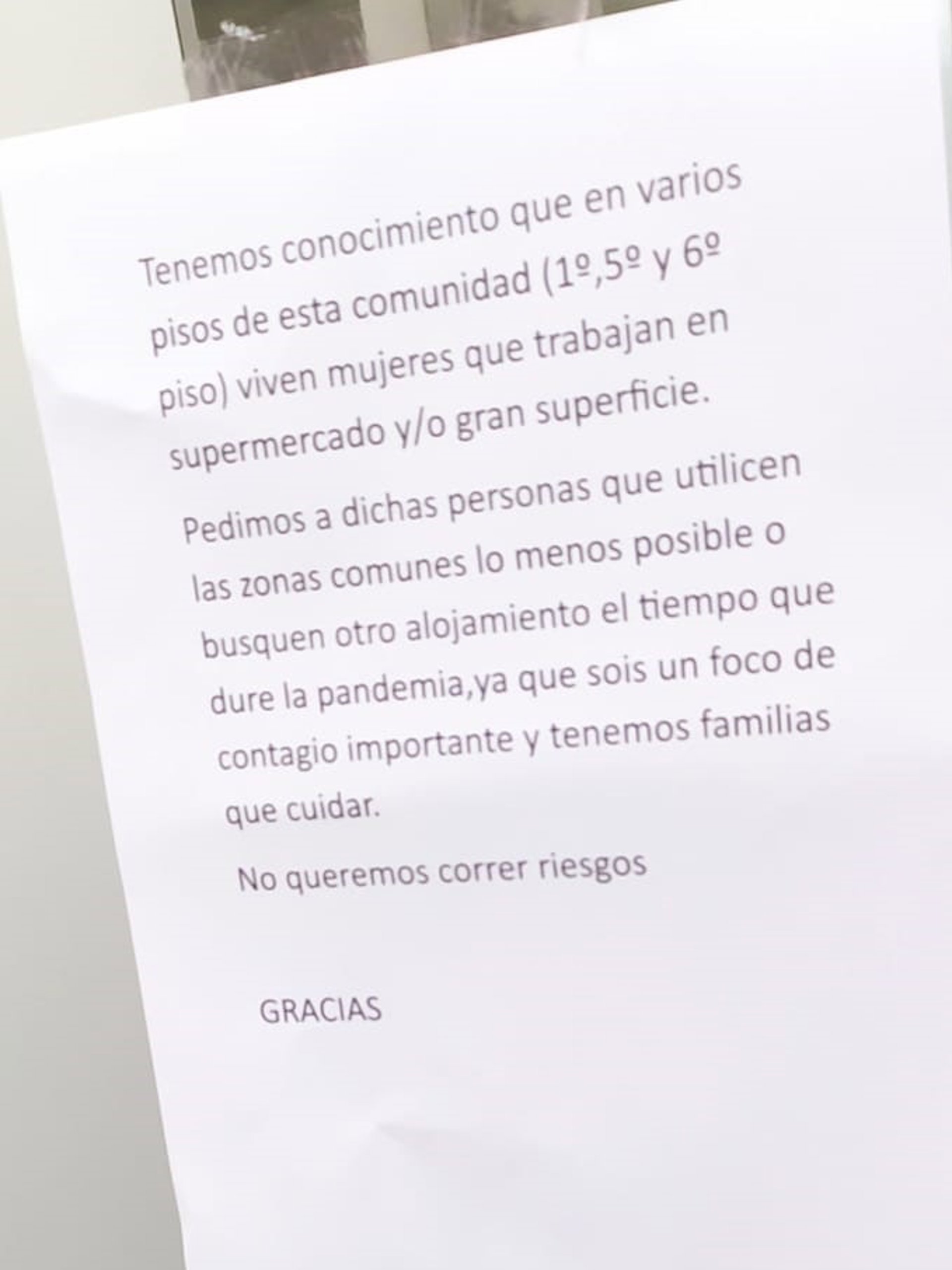 Carta anónima instando a trabajadores de supermercados a no residir en sus viviendas - GRUPO UVESCO
