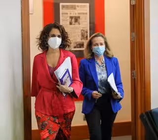 Archivo - La ministra portavoz y ministra de Hacienda, María Jesús Montero (i); y la vicepresidenta tercera y ministra de Asuntos Económicos y Transformación Digital, Nadia Calviño, a su llegada a una rueda de prensa posterior al Consejo de Ministros ex - EUROPA PRESS/M.FERNÁNDEZ. POOL - Europa Press