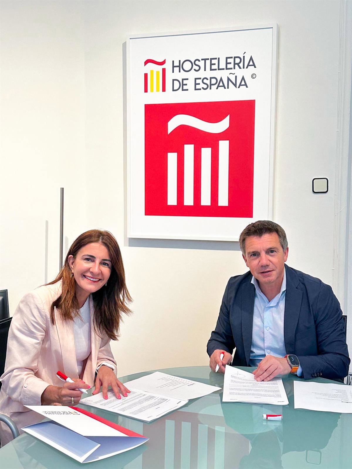 El presidente de Hostelería de España, José Almeida, y la directora de Fuerza de Ventas B2B de Repsol, Susana Baños, - HOSTELERÍA DE ESPAÑA