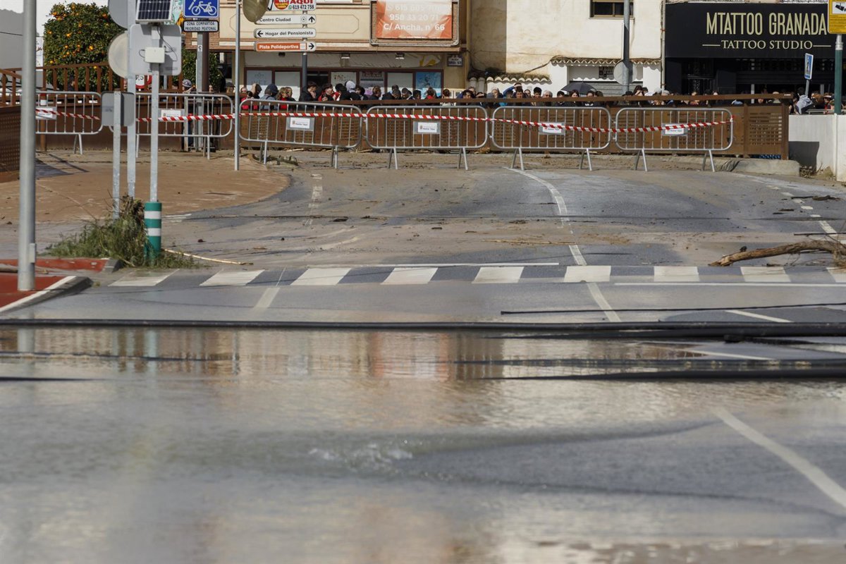 Imagen de los graves desperfectos que el temporal ha ocasionado a la carretera de acceso a Huétor Tajar (Granada). - Álex Cámara - Europa Press