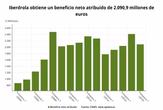 Iberdrola gana 2.091 millones a septiembre, un 13,5% menos, por la ausencia de extraordinarios