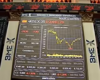 El Ibex 35 se anotaba una caída del 0,87% a media sesión (12.13 horas), acelerando el descenso con el que iniciaba la jornada, pero seguía manteniendo la cota de los 9.400 puntos, al situarse en 9.437,4 enteros.
