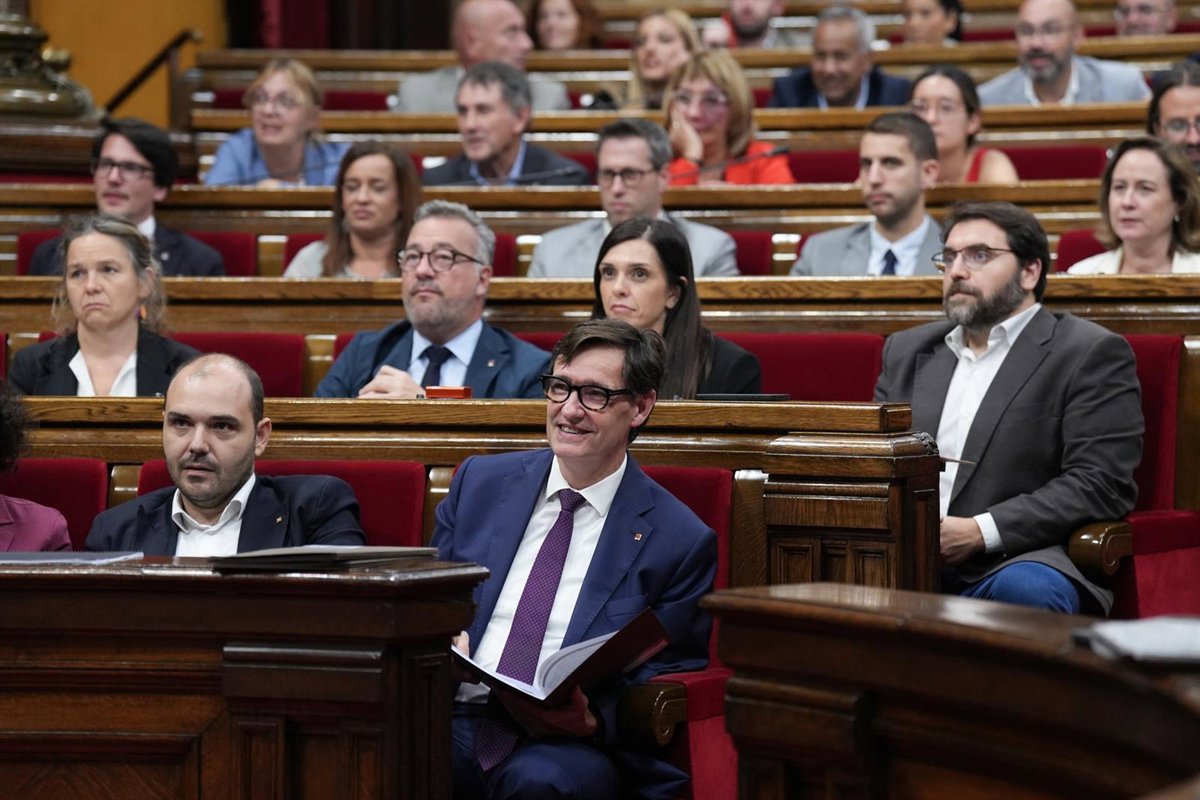 Archivo - El president de la Generalitat, Savador Illa, y el conseller de la Presidència, Albert Dalmau, en el Parlament de Catalunya, a 9 de octubre de 2025, en Barcelona, Catalunya (España). - David Zorrakino - Europa Press - Archivo