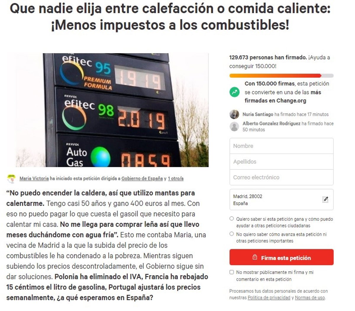 La petición para bajar los impuestos a los carburantes iniciada en Change.Org - CHANGE.ORG