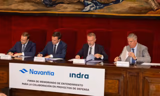 Navantia e Indra han firmado un acuerdo de colaboración para desarrollar y comercializar conjuntamente sistemas y soluciones digitales en las áreas de defensa y seguridad, una iniciativa con la que ambas empresas "fortalecerán su capacidad exportadora e impulsarán su posición en la Europa de la defensa", según han señalado las dos compañías en un comunicado conjunto.