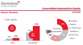 Los datos aislados del mes de junio muestran un crecimiento del 34% frente a los registrados hace un año, cuando los confinamientos y las moratorias decretadas durante la primera ola de la pandemia redujeron drásticamente la presentación de procesos concursales.