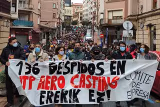 Manifestación de trabajadores de ITP de Barakaldo y Sestao contra los 136 despidos planteados por la empresa. - EH BILDU