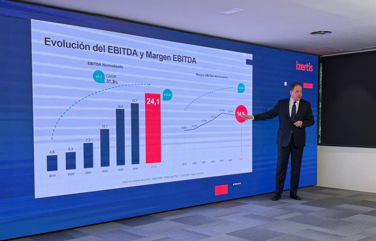 Martín ha aplaudido que Izertis está de aniversario, pues la firma cumple este año 30 ejercicios. "Es algo realmente importante que una compañía logre estar 30 años ejecutando un plan de negocio y cumpliendo año tras año con todos esos objetivos, creciendo ininterrumpidamente", ha celebrado este miércoles el ejecutivo en la presentación de los resultados de la firma, que obtuvo un beneficio de actividades continuadas de 4,45 millones de euros en 2025, un 1,8% más que un año antes.