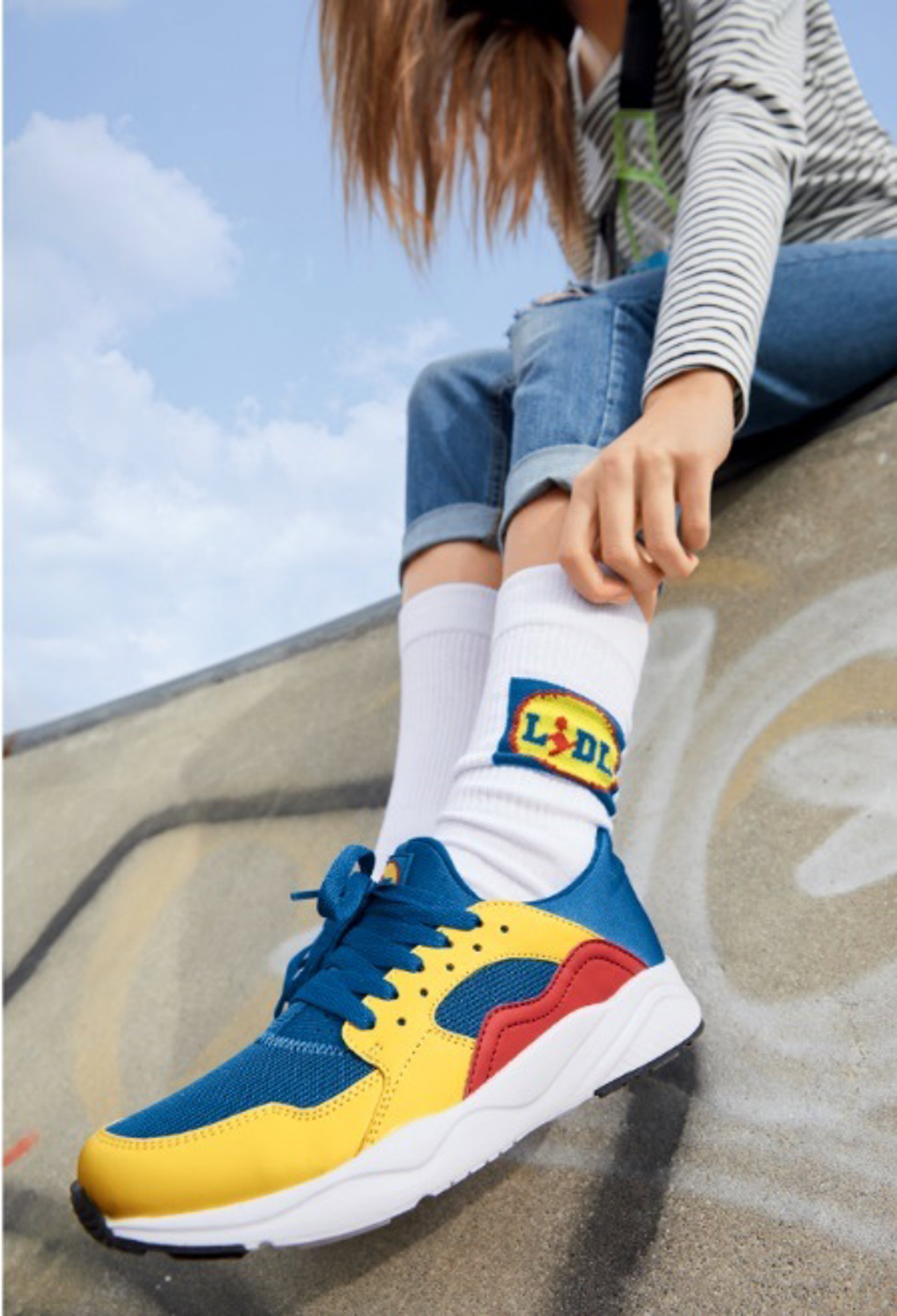 De esta forma, las zapatillas son la pieza más demandada que contienen los colores del logo de Lidl (amarillo, azul y rojo) y arrasaron en Europa por solo 19,99 euros. Además, cuenta con camisetas tanto para hombre como para mujer, calcetines, gorras y chanclas con el logo de la marca.