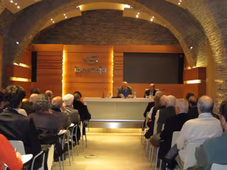 Luis de Guindos ha inaugurado este martes el ciclo 'Cambio, modernización y progreso', con la conferencia 'Perspectivas económicas europeas y españolas', que ha organizado la Real Sociedad Económica de Amigos del País, en colaboración con la Obra Social de Ibercaja.