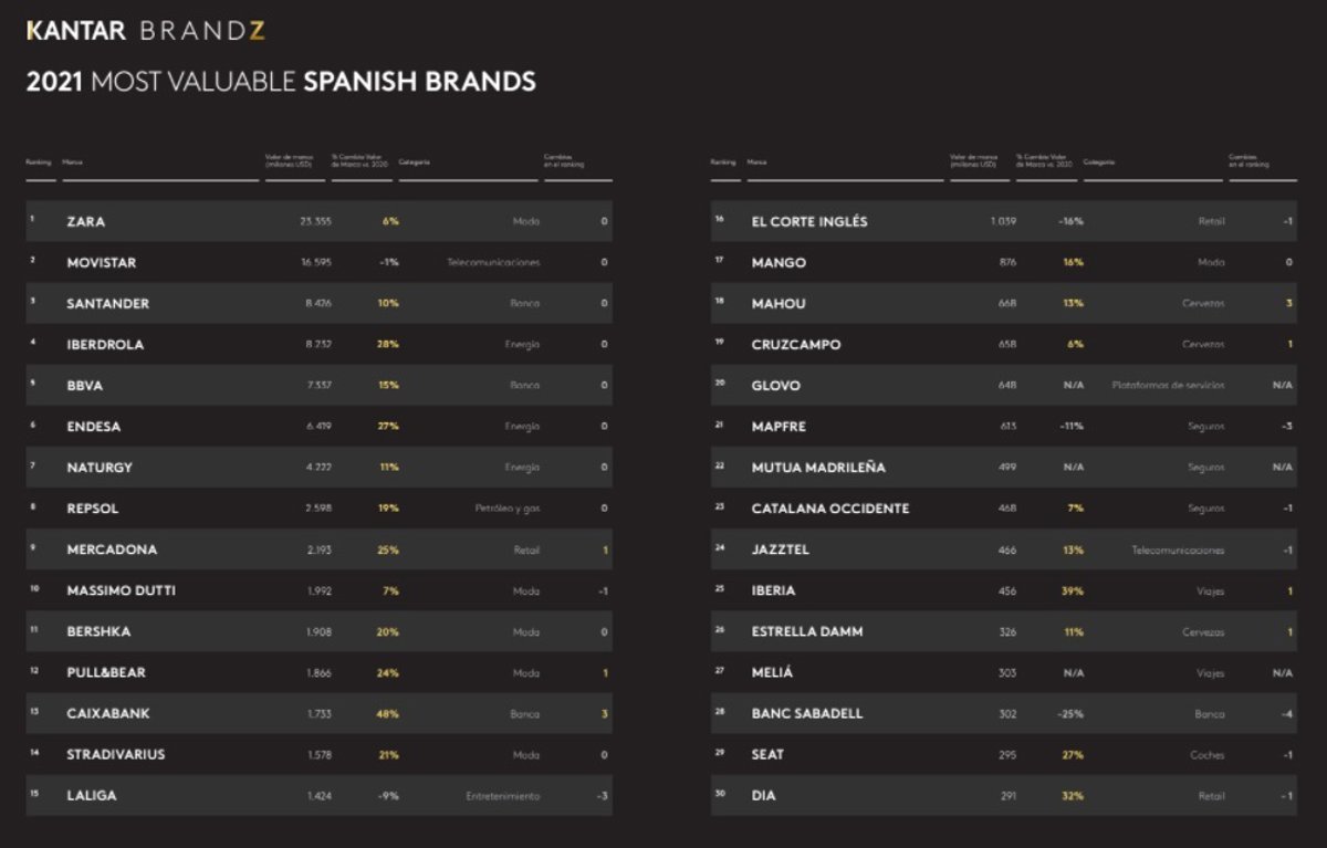 Ranking de las marcas españolas de Kantar BrandZ - KANTAR