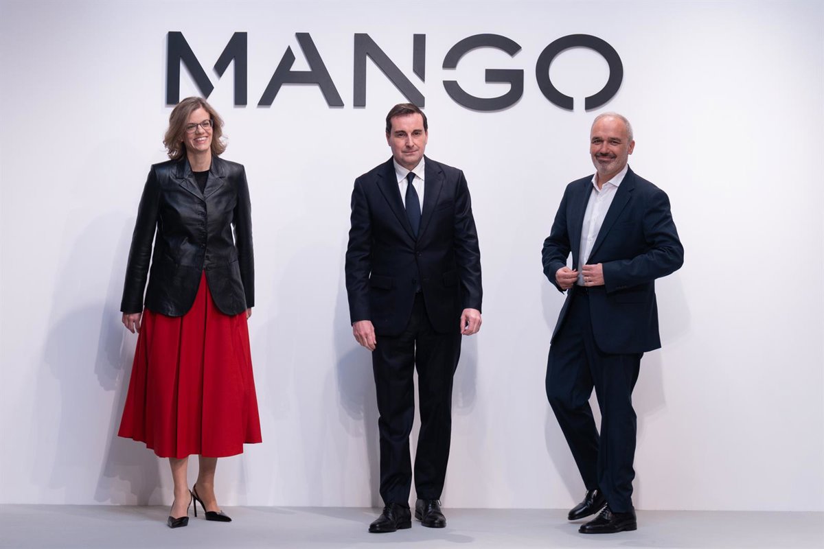 Archivo - (I-D) La directora financiera de Mango, Margarita Salvans; el presidente y consejero delegado de Mango, Toni Ruiz y el director de Expansión y Franquicias, Daniel López, durante la presentación de resultados 2024, en la sede de Mango - David Zorrakino - Europa Press - Archivo
