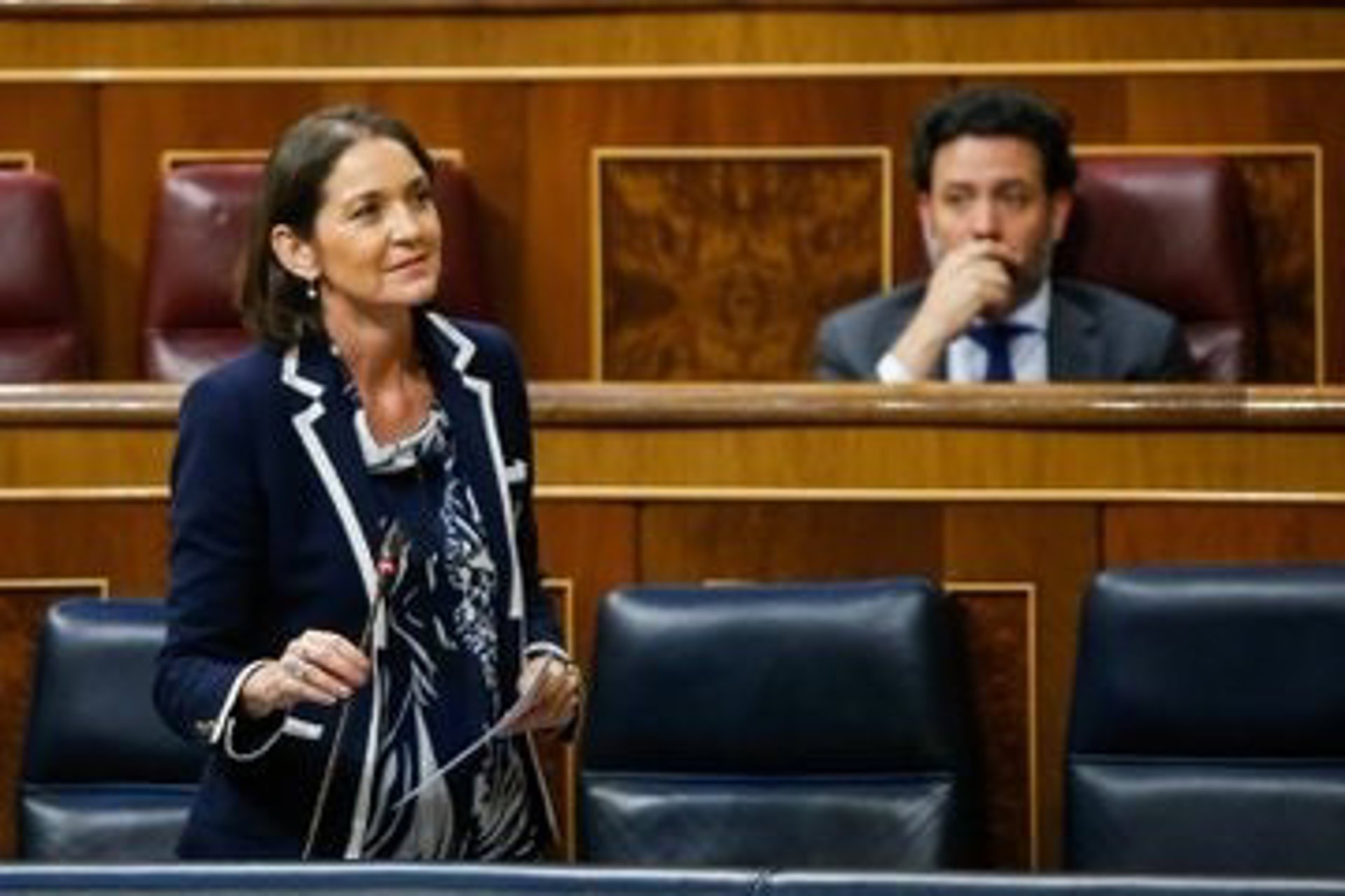 La ministra de Industria, Comercio y Turismo, Reyes Maroto, en la sesión de control al Gobierno en el Congreso este miércoles - CONGRESO