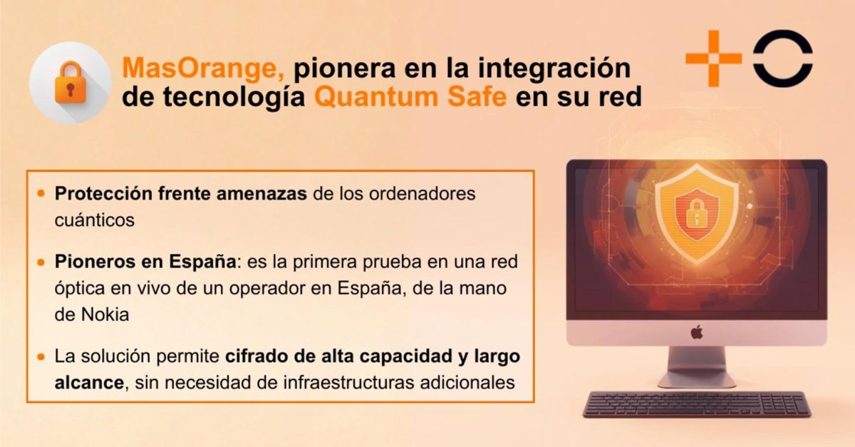 MasOrange se ha posicionado como operador pionero en el uso de la solución 'Quantum Safe' en la transición hacia redes preparadas para la era cuántica, demostrando, a su vez, la viabilidad de proteger las redes ópticas y servicios IP del operador.