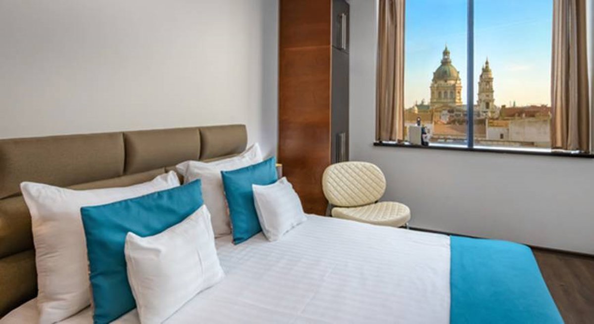 El establecimiento goza de una ubicación estratégica a escasos metros del Danubio, el Parlamento y la Basílica de San Esteban. El inmueble destaca por su fachada Art Decó y cuenta con una de las terrazas más reconocibles de Budapest, el 'rooftop' Intermezzo Restaurant and Café, que ofrece vistas panorámicas de las colinas de Buda.