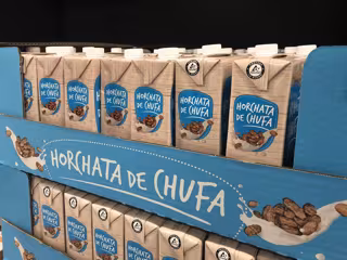 La horchata y la bebida de chufa se recomiendan beber en frío y se venden en formato de un litro, junto a los envases de tres 'bricks' de 330 mililitros.