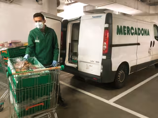 Trabajador de Mercadonas preparando productos para donar - MERCADONA