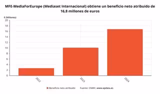 El conglomerado de medios de comunicación MFE-MediaForEurope (MFE) obtuvo un beneficio neto consolidado de 16,8 millones de euros en el primer trimestre, cifra un 66,5% superior al resultado positivo de 10,1 millones de euros que obtuvo en el mismo periodo de 2023, según ha informado el grupo este jueves en un comunicado.