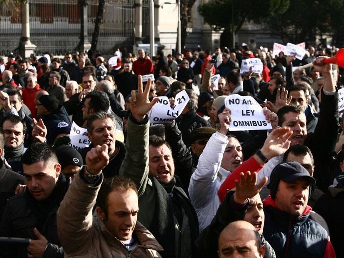 Miles de taxistas se echaron este miércoles a la calle para exigirle al Gobierno que preside José Luis Rodríguez Zapatero que no siga adelante con la "modificación" del artículo 21 de la llamada Ley Ómnibus ya que, a su juicio, conseguirá que la profesión se "prostituya" al "liberalizar" las licencias y permitiendo que "cualquiera" pueda ofrecer el servicio "sin ningún tipo de regulación".
