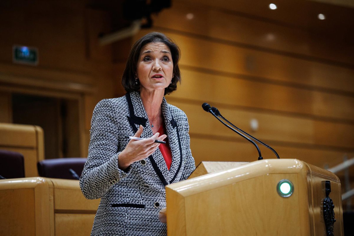 La ministra de Industria, Comercio y Turismo, Reyes Maroto, en un pleno en el Senado, a 15 de febrero de 2022, en Madrid (España). El presidente del Gobierno ha vuelto a una sesión de control de Gobierno en el Senado, después de diciembre del año pasado - Alejandro Martínez Vélez - Europa Press