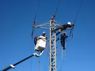 Operarios trabajando en una red eléctrica. - ENDESA - Archivo