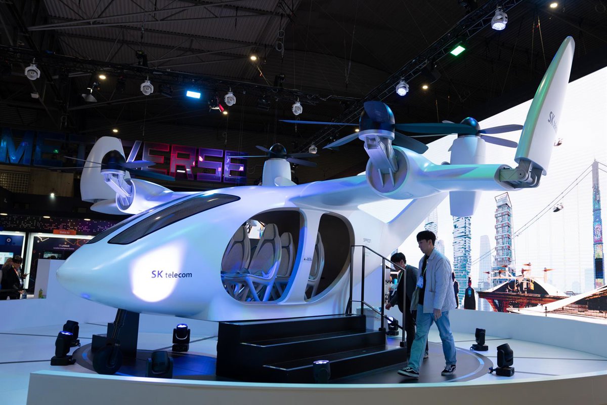 Archivo - Estand de SK Telecom en el Mobile World Congress (MWC) 2023 - David Zorrakino - Europa Press - Archivo