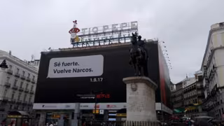 Una nueva lona publicitaria instalada en la Puerta del Sol por Netflix ha vuelto a generar polémica y se ha viralizado en las redes sociales casi nueve meses después de que la misma marca instalase un anuncio de su serie 'Narcos' que provocó que la Embajada de Colombia pidiese que se retirase el cartel.