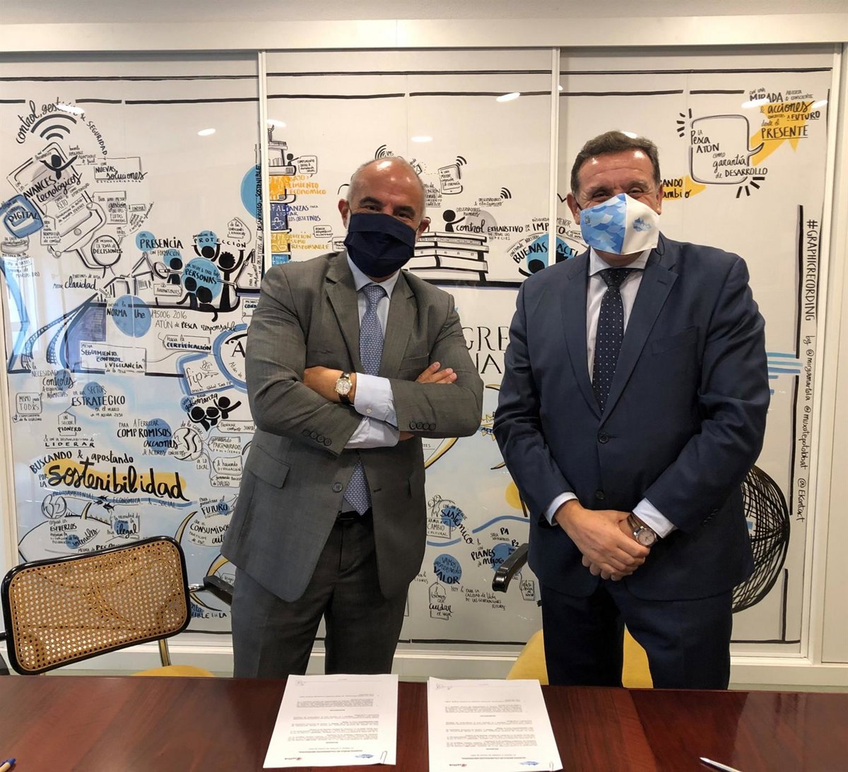 Faustino Velasco, presidente de Satlink, y Julio Morón, director gerente de OPAGAC - OPAGAC