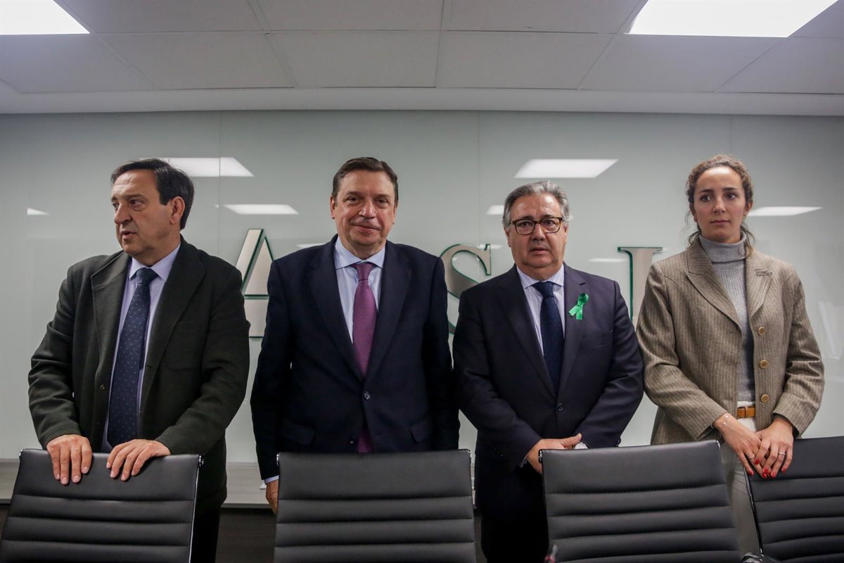 (I-D) El presidente de ASAJA, Pedro Barato; el ministro de Agricultura, Pesca y Alimentación, Luis Planas; el eurodiputado del PP Juan Ignacio Zoido; y la presidenta de ASAJA Joven, María Llorens, durante entrega de reconocimientos de premios - Ricardo Rubio - Europa Press