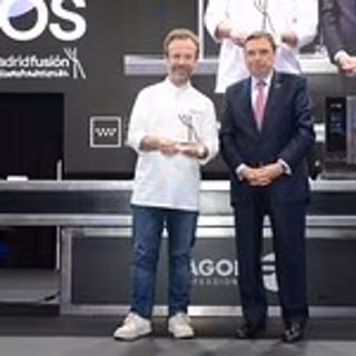 El ministro de Agricultura, Pesca y Alimentación, Luis Planas, ha entregado el premio 'Alimentos de España en defensa del producto', patrocinado por su Departamento, al chef Nacho Manzano en el XXIII Congreso Madrid Fusión Alimentos de España - MAPA