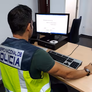 Archivo - Policía Nacional frente a una pantalla de ordenador - POLICÍA NACIONAL - Archivo