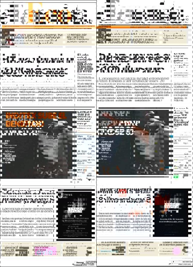 Las primeras ediciones de los periódicos de información económica españoles incluyen, entre otras, las siguientes noticias en sus portadas: