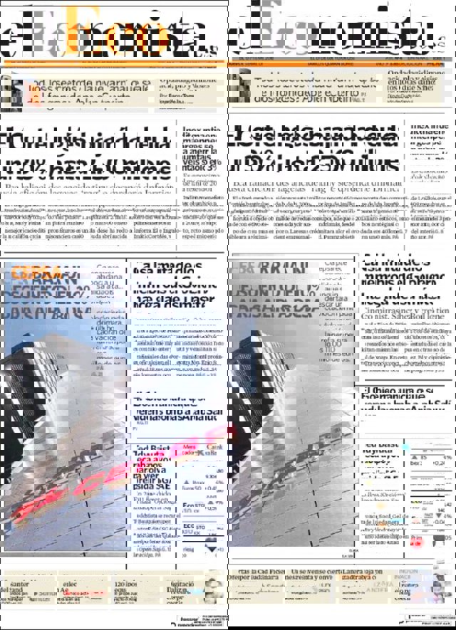 Las primeras ediciones de los periódicos de información económica españoles incluyen, entre otras, las siguientes noticias en sus portadas: