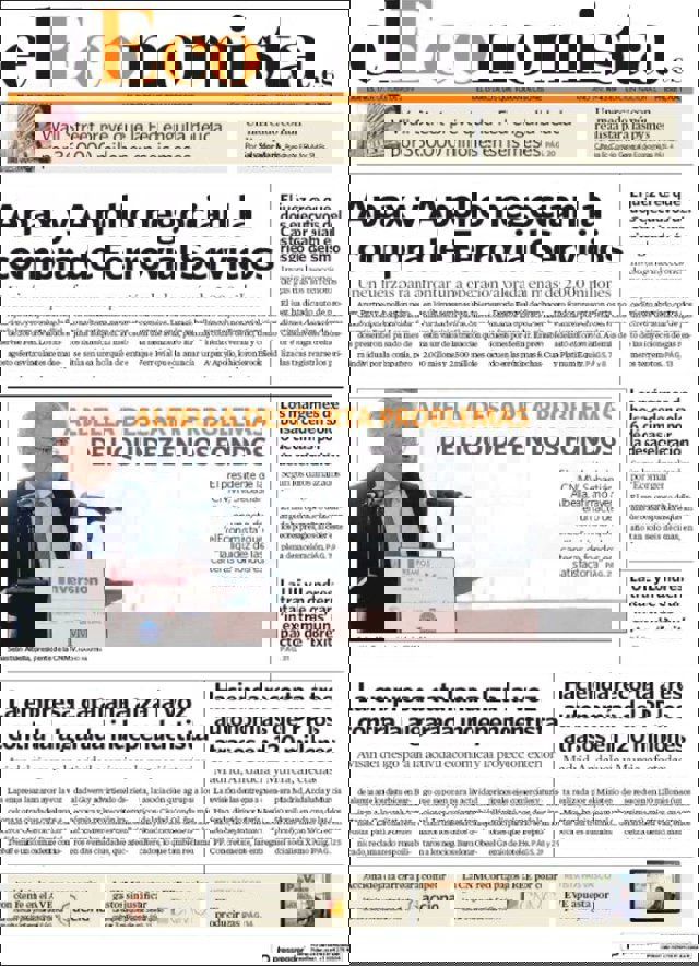 Las primeras ediciones de los periódicos de información económica españoles incluyen, entre otras, las siguientes noticias en sus portadas: