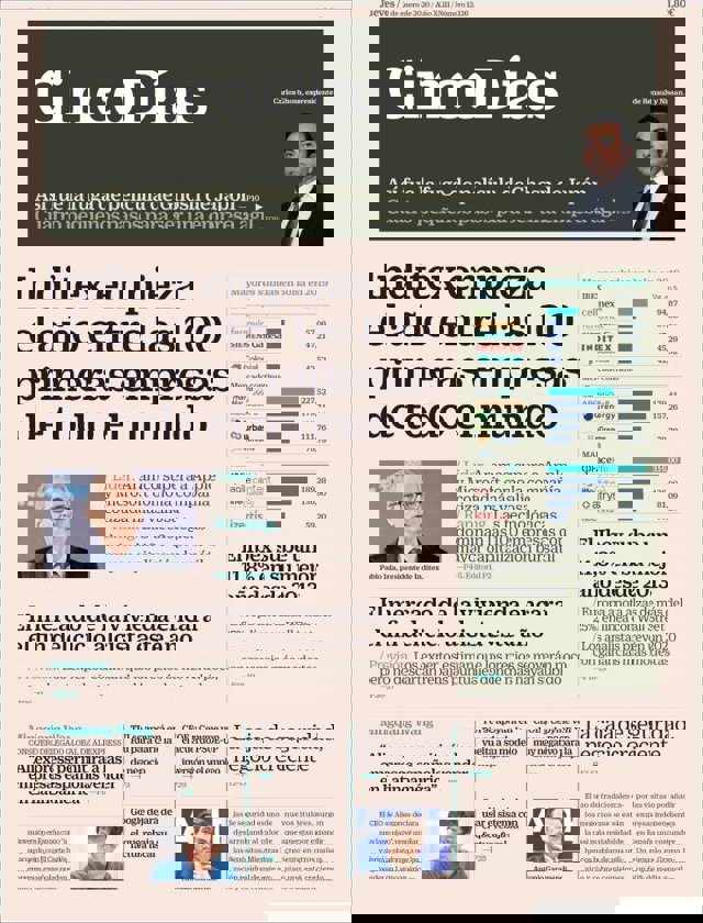 Las primeras ediciones de los periódicos de información económica españoles incluyen, entre otras, las siguientes noticias en sus portadas: