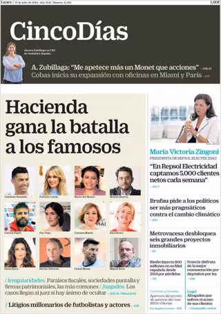 CINCO DÍAS: "Hacienda gana la batalla a los famosos"; La presidenta de Repsol Electricidad, María Victoria Zingoni: "En Repsol Electricidad captamos 5.000 clientes netos cada semana".